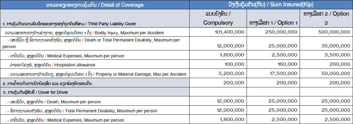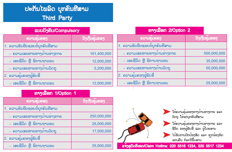 ແມ່ນປະກັນໄພທີ່ຄຸ້ມຄອງບຸກຄົນທີສາມ ຫຼື ຄູ່ກໍລະນີ, ຖ້າກໍລະນີເກີດອຸບັດຕິເຫດ ບໍລິສັດ ປະກັນໄພ ຈະຊ່ວຍເຂົ້າໄປເບິ່ງແຍ່ງ ແລະ ຊົດໃຊ້ຄວາມເສຍຫາຍໃຫ້ແກ່ບຸກຄົນທີສາມ ທີ່ໄດ້ເກີດອຸບັດຕິເຫດຮ່ວມກັບທ່ານ ບໍ່ວ່າຈະເປັນ ບຸກຄົນ, ພາຫະນະ ລວມໄປເຖິງຊັບສິນຕ່າງໆຂອງບຸກຄົນທີ່ສາມ.