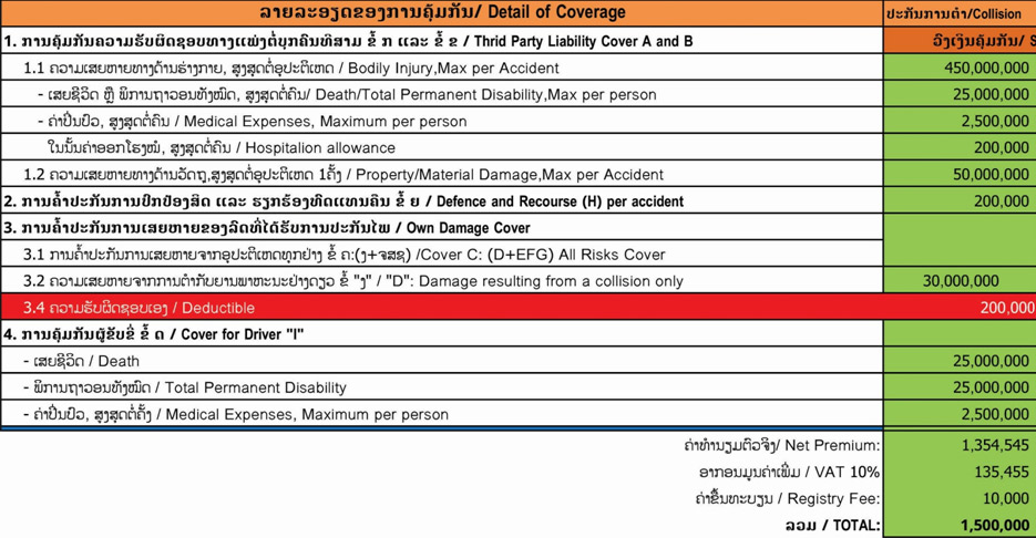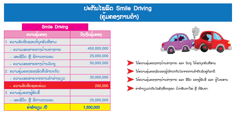 ແມ່ນປະກັນໄພລົດທີ່ຄຸ້ມຄອງການຕໍາ, ບໍລິສັດປະກັນໄພ ຈະຊ່ວຍເຂົ້າໄປເບິ່ງແຍ່ງ ແລະ ຊົດໃຊ້ຄວາມເສຍຫາຍໃຫ້ແກ່ບຸກຄົນທີສາມ ລວມໄປເຖິງຄວາມເສຍຫາຍຂອງທ່ານ, ໃນກໍລະນີອຸບັດຕິເຫດທີ່ເກີດຈາກຕໍາຂອງພາຫະນະ ແລະ ພາຫະນະ.