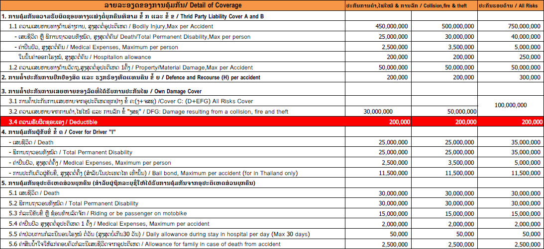 ແມ່ນປະກັນໄພລົດທີ່ໃຫ້ການຄຸ້ມຄອງຕັ້ງແຕ່ການຄຸ້ມຄອງການຕໍາ ຈົນເຖິງການຄຸ້ມຄອງແບບຮອບດ້ານ, ເຊິ່ງທາງບໍລິສັດໄດ້ເພີ່ມຂະຫຍາຍການຄຸ້ມຄອງໄປເຖິງປະເທດໄທ ທີ່ສາມາດໃຫ້ບໍລິການ ແລະ ຄຸ້ມຄອງຕົວລົດຂອງທ່ານໄດ້ແບບດຽວກັນທັງ 2 ປະເທດ.